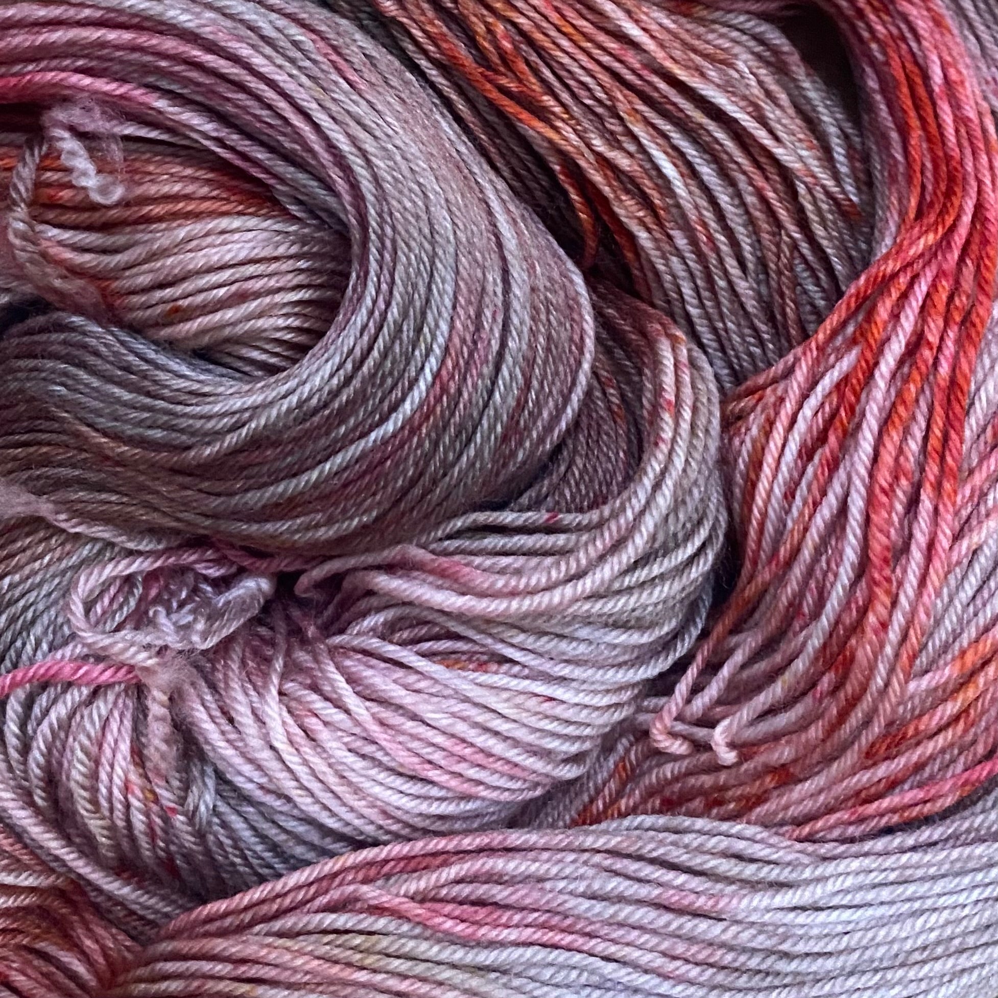 These lovely fingering weight yarns are hand dyed in our downstairs studio space at the shop by Lesley, the owner of Rosehaven Yarn Shop.