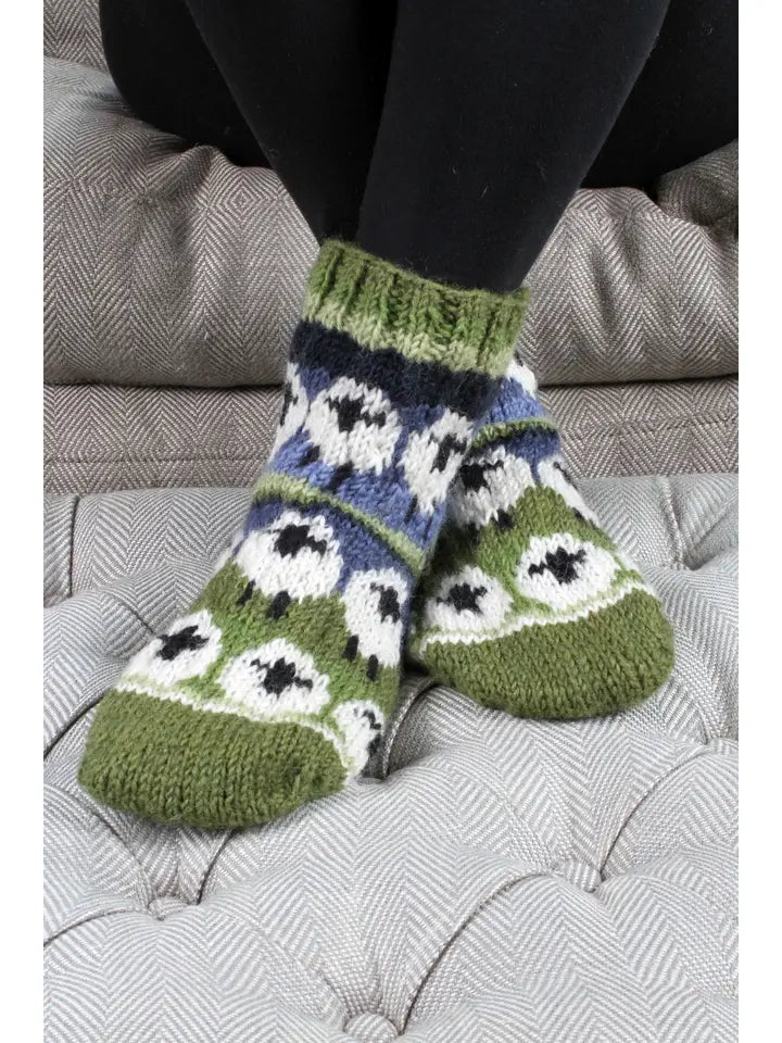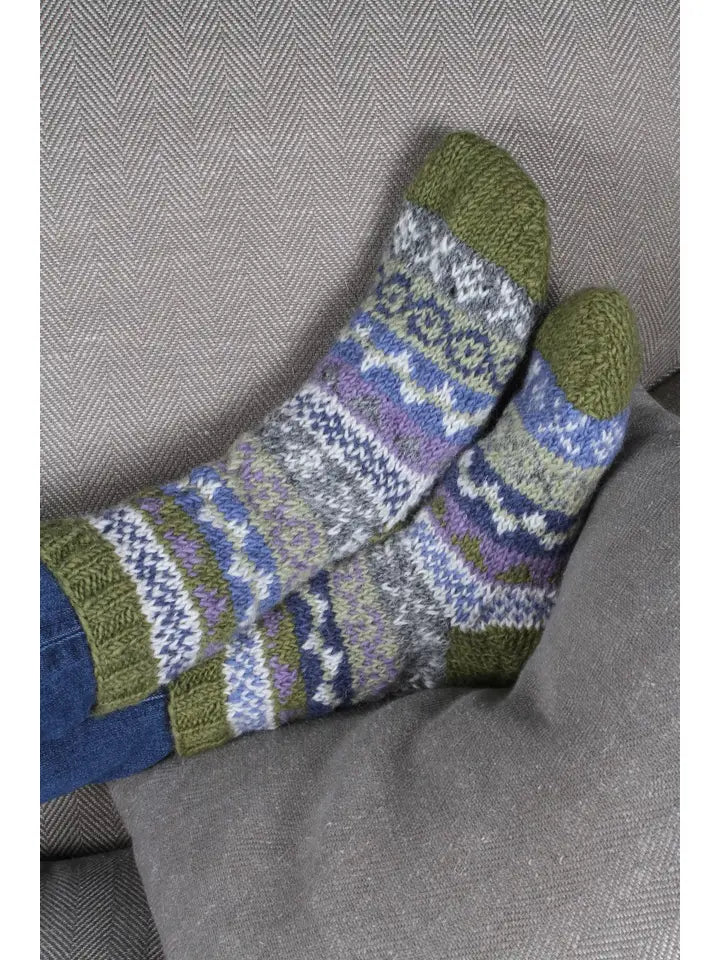 Classic Fair Isle - bands of traditional patterns made up of carefully selected colours in a range of simple patterns which may vary from piece to piece. Pachamama sofa socks will keep your feet warm in winter curled up in front of the log burner. - 100% Wool - Unlined - Handmade - Please note our sofa socks are not slippers and are best suited for light wear around the home.